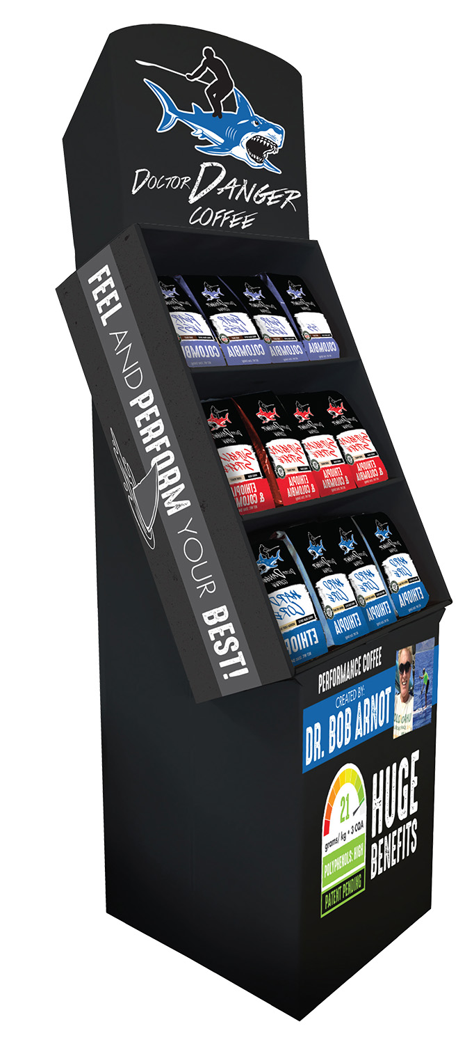 Customer wanted a creative display for his unique coffee product that complemented his brand name “Doctor Danger Coffee”.